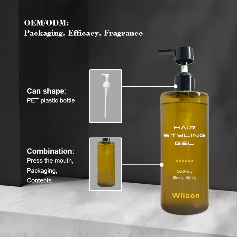 Dengan peningkatan standar hidup, kosmetik penata rambut menjadi semakin populer. Wilson Acohol Free Gloss Hair Styling Gel Kosmetik mengacu pada penataan rambut dan efek memodifikasi kosmetik, disemprotkan atau diaplikasikan pada rambut, penguapan pelarut dan pengeringan pada rambut untuk membentuk film transparan, sehingga serat rambut mengeras dan mempertahankan bentuk tujuan untuk memenuhi kebutuhan berbagai rambut.