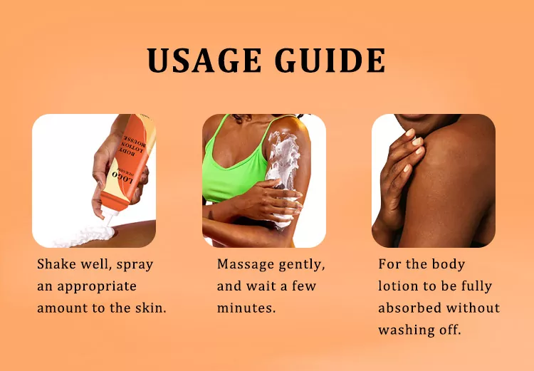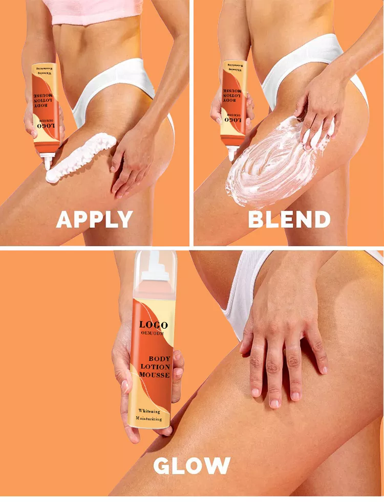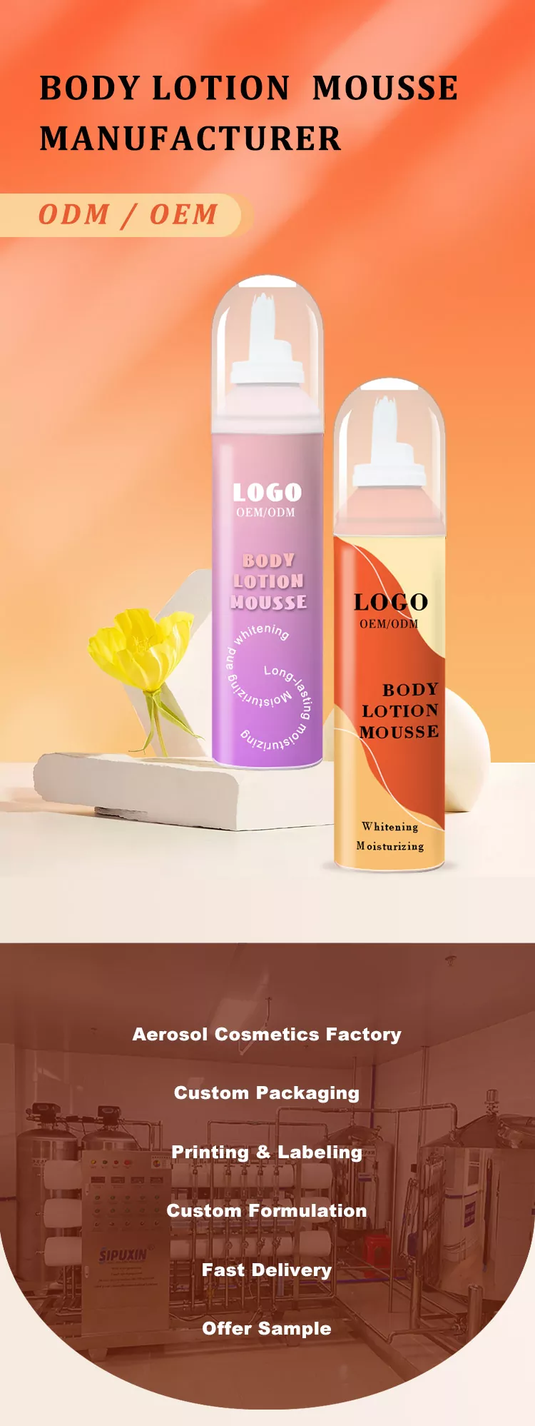 Wilson Bersih Kulit Kering Kulit Kocok Lotion Body Mousse adalah pelembab yang tahan lama yang dapat diserap ke dalam tubuh. Mousse kami hadir dalam bentuk aerosol dalam kaleng aluminium, yang menghasilkan busa kaya saat ditekan. Dibandingkan dengan perasaan lotion tradisional yang berat dan lengket, mousse tubuh kita membawa sentuhan ringan, seperti awan lembut dan padat. Selain itu, kami memiliki berbagai formulasi untuk dipilih, misalnya, Anda dapat menambahkan ke formula yang mengandung ekstrak pelembab yang sangat efektif seperti asam hyaluronic multipel, ekstrak tumbuhan alami, dll., Yang dapat membuat mikrostruktur busa lebih kondusif untuk komposisi bahan-bahan langsung di bawah kulit, sehingga ia memiliki hidrasi intensif, lock-lepas long-longgar. Pengaruh Long-lampau. Kulit dilembabkan dari dalam ke luar.