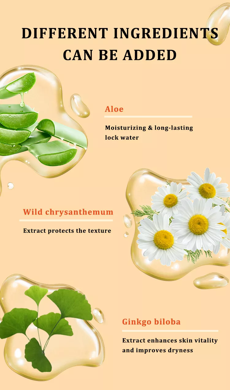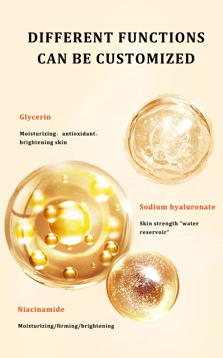 Kami juga dapat menyesuaikan formula yang Anda inginkan berdasarkan bahan -bahan spesifik produk (mis. Asam hialuronat utama, niacinamide, vitamin E, ekstrak tanaman spesifik, dll.), Wewangian (mis. Mawar, teh putih, tanpa wewangian, dll.), Dan apakah itu memiliki efek khusus (mis. Perbaikan yang kuat, pemutihan, pengurangan, dll.).