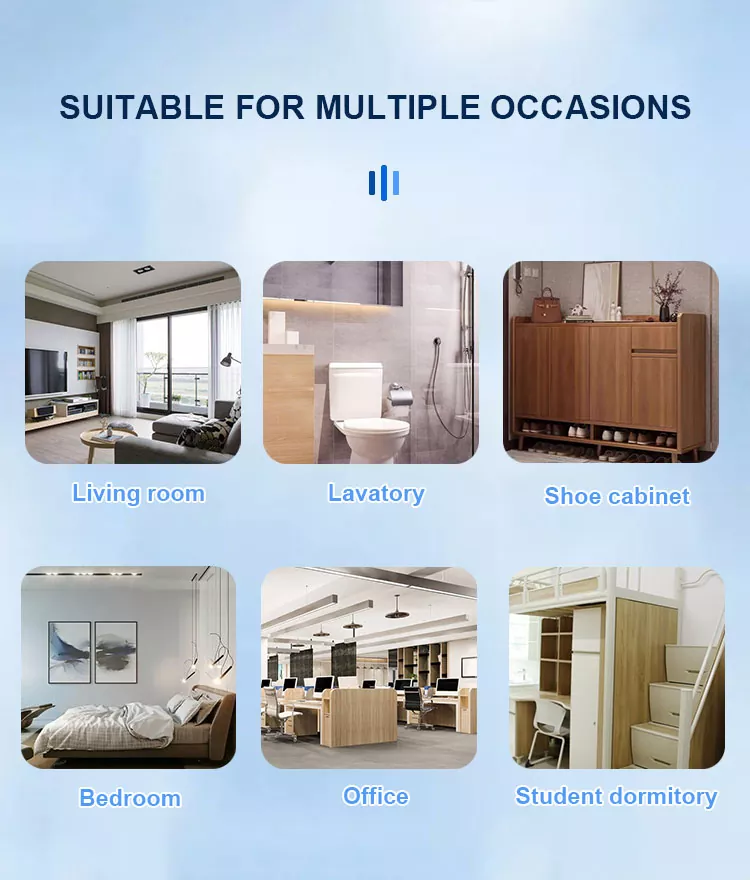 adalah produk yang dirancang khusus untuk meningkatkan kualitas udara dalam ruangan. Dapat meningkatkan bau dalam ruangan, formaldehida, PM2.5 dan zat berbahaya lainnya, sehingga Anda menghirup udara lebih murni dan segar. Penyegar udara cocok untuk skenario berikut: